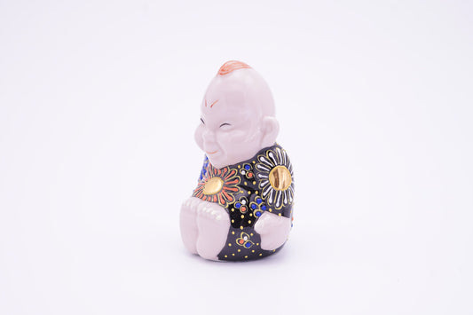 ビリケン 4号(大サイズ)|花盛黒袖なし【絵付:伝統工芸士 相川志保】