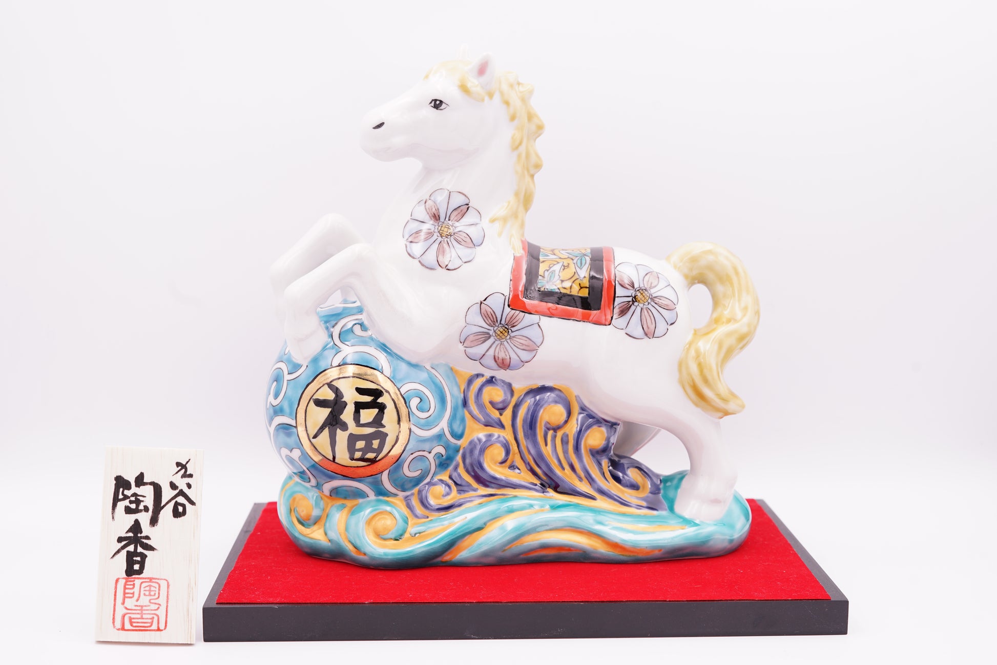 【干支 2026年】午|7.5号 波乗り午 色絵九谷